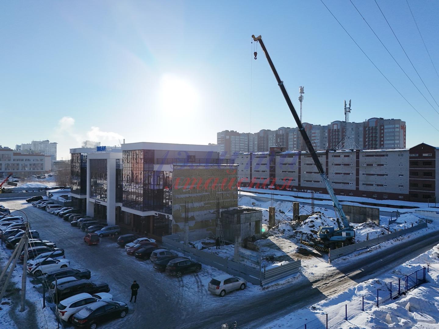 Неподалеку построено здание большой современной районной поликлиники.