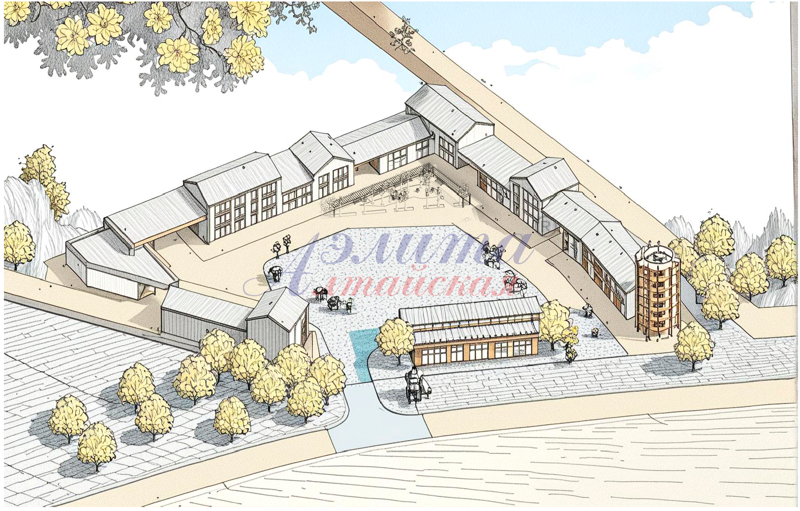 Для участка разработана профессиональная концепция коммерческого туристического центра «ЭТОАЛТАЙ» — современного кластера нового формата, ориентированного на устойчивый туристический поток и прогнозируемый денежный поток.