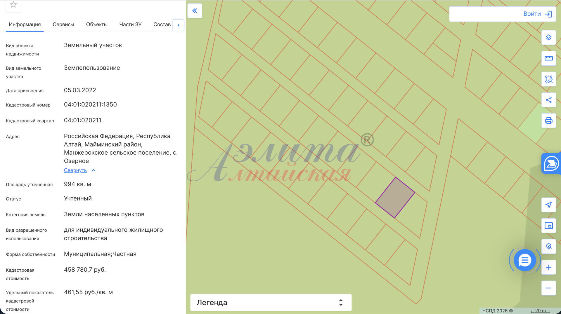Предлагается к продаже земельный участок с кадастровым номером 04:01:020211:1350 в непосредственной близости от ГЛК «Манжерок».