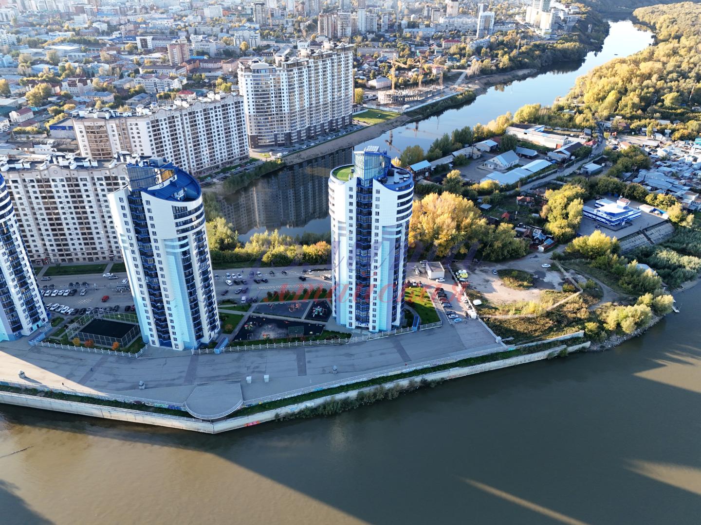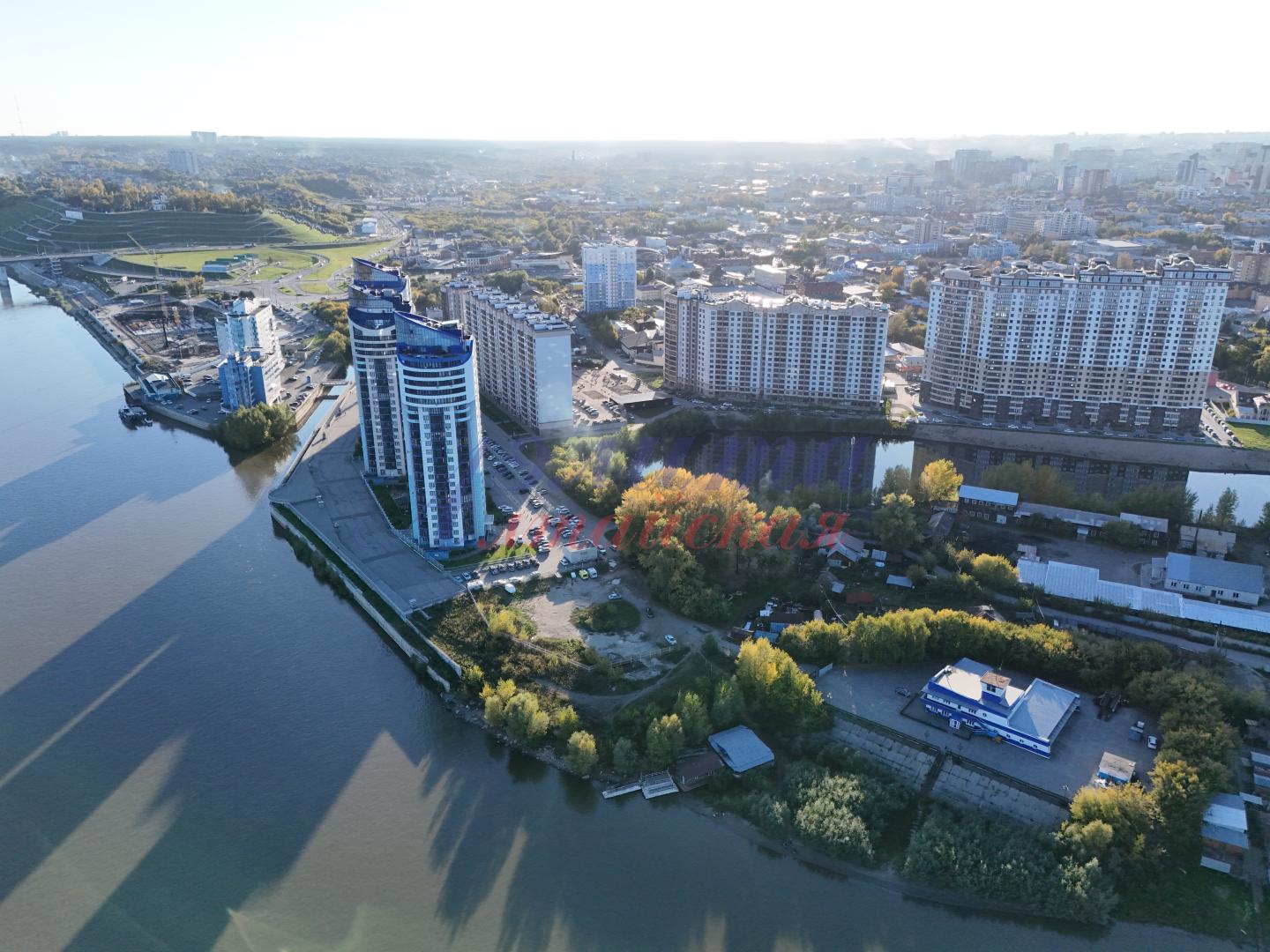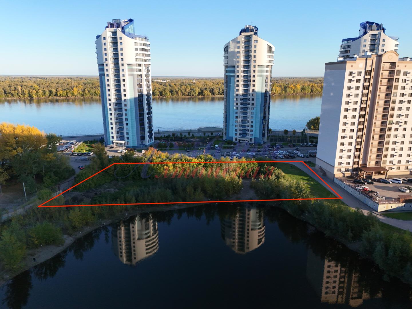 Участок расположен по соседству с жилыми комплексами «Аквамарин», «Новая пристань», «Родные берега». Фасадной стороной он выходит на улицу Приречную, обратной стороной на водную гладь барнаульского ковша.