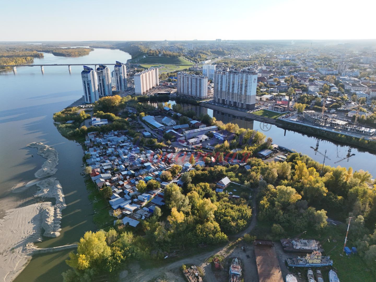 По предварительным подсчетам, здесь предлагают разместить порядка 20 жилых домов в 10-25 этажей, два детских сада, две четырехэтажные школы, поликлинику, три многоуровневых паркинга, спорткомплекс с причалом, скверы и природный парк (из имеющихся зеленых массивов на полуострове Побочень) с выходом к реке.